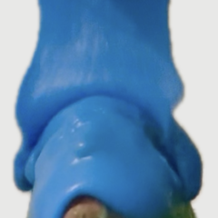 Megan is a brunette, brown eyed girl in a red bikini with tattooed arms, knelt in the shower giving her partner a drooly blowjob. After several minutes she lets him take over, and he begins to wank himself up to what looks to be a spectacular cumshot, but falls a bit short of the mark. The pie is then shoved into Megan's face, the first of many. She looks great getting pied, but the fixed camera position was setup for the blowjob and now she's sitting back in the shower, she occasionally rises out of shot. Thankfully the camera angle is adjusted for the final part where Megan gets a bucket of blue gunge poured over her head. She looks great covered in the white and blue mixture, very hot. She rubs the mess all over herself and gets a further pie and some more dollops of gunge from the bucket.