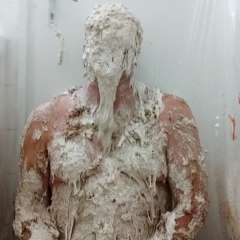 I'm getting naughty with my dildo but the mess is calling so I squirt whipped cream on myself as I masturbate, covering my dildo. But that's not enough and I continue to use the whole can as well as a can of chocolate whipped cream. It feels so good fucking myself in the mess that I pour double cream over my head as I squirt.