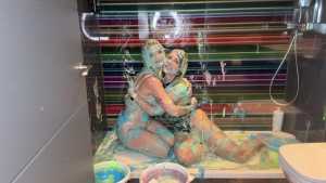 I pour gunge into my wellies and put them on before I start to fill my plastic suit with layers of coloured gunge, the suit gets very heavy so I sit down and continue until I get to the red. The hood needed to be filled to... Starring: | |||||